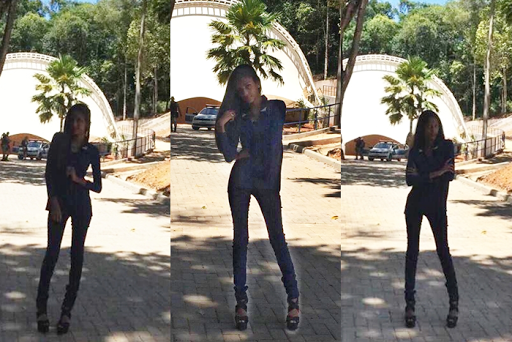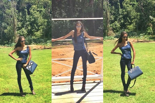 Descontraída e segura, a modelo Iana aproveitou para unir o útil ao agradável: Modelar tendo como plano de fundo, um cenário da natureza.