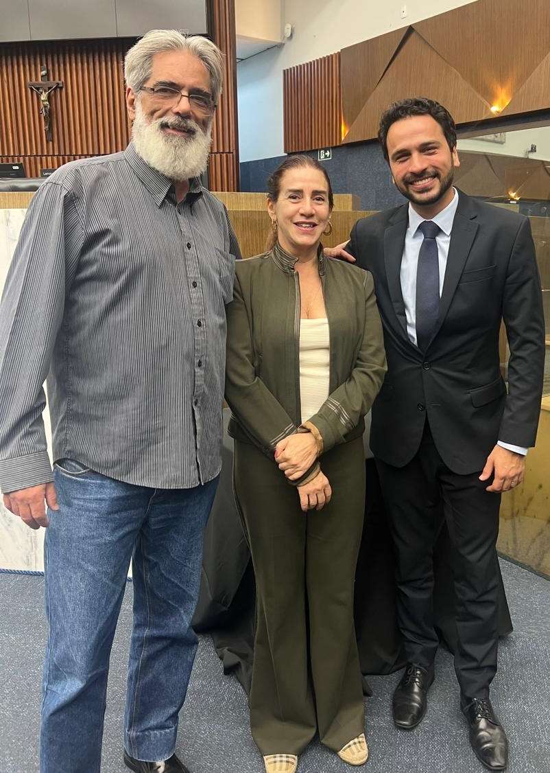 Jornalistas Alexandre Siqueira e Jussara Ribeiro com o vereador Uner Augusto