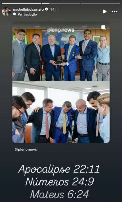 Em tom de crítica velada, Michelle repostou a imagem nos Stories de seu Instagram acompanhada de três referências bíblicas:
