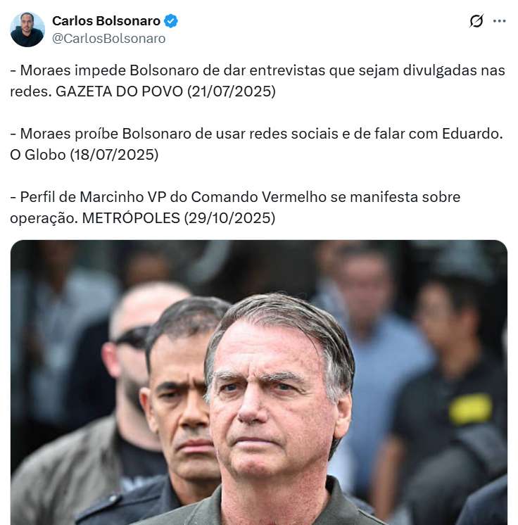 Com apenas três frases, Carlos mostra o quão absurda é a prisão de Bolsonaro