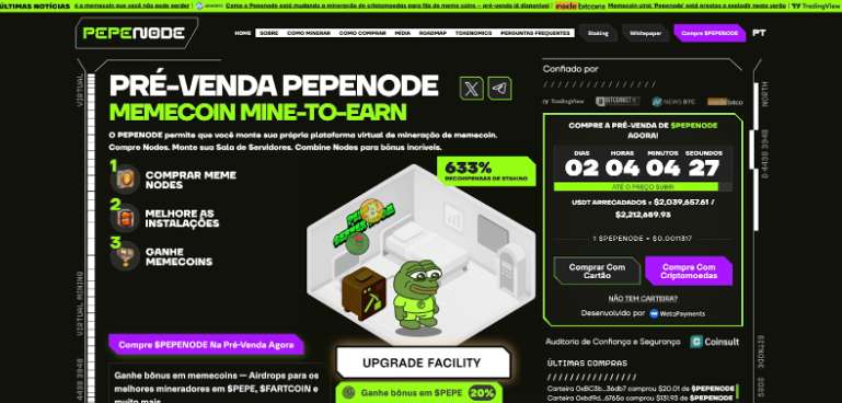 - PepeNode, para quem acredita em gamificação, staking e explosão viral no mundo das memecoins.