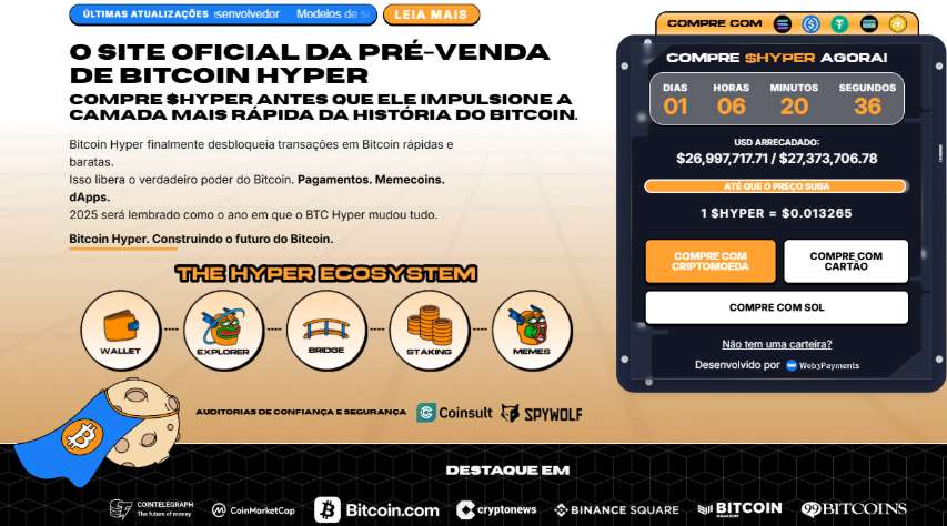 É o caso do Bitcoin Hyper, que já ultrapassou a marca de US$ 26,99 milhões arrecadados na pré-venda e promete transformar a rede Bitcoin com uma solução de segunda camada (Layer 2) voltada para velocidade, staking, memes e aplicações DeFi.