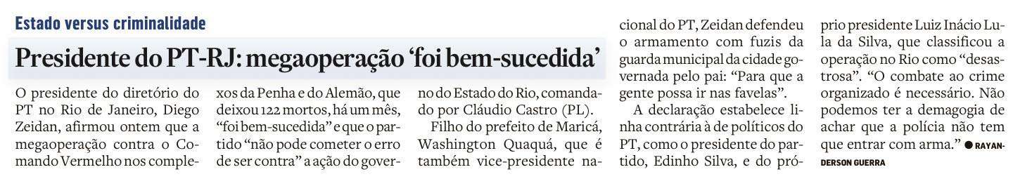 É possível ter uma ideia do apoio popular do carioca à operação nos complexos da Penha e do Alemão quando até os próceres do PT na cidade a apoiam.
