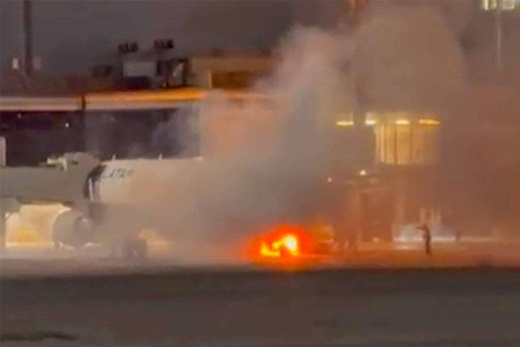 Avião lotado pega fogo na pista de aeroporto em SP (veja o vídeo)