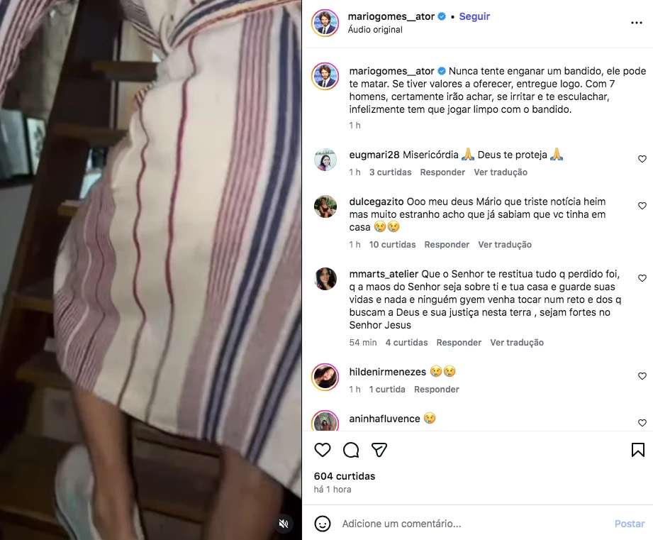 O ator Mário Gomes informou, nesta sexta-feira (5), que sua residência, localizada na Barrinha, na Zona Sudoeste do Rio de Janeiro, foi alvo de um assalto. Pelas redes sociais, o artista mostrou registros do local e contou que sua família foi feita refém durante a ação.