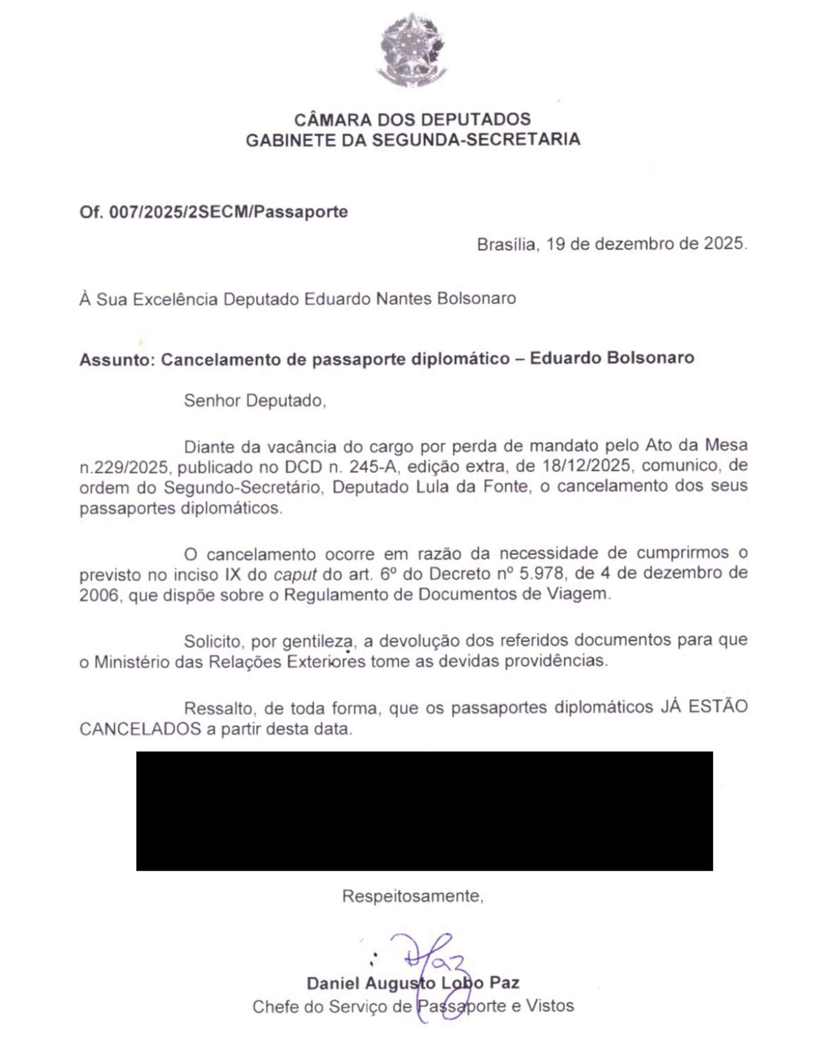 URGENTE: Passaporte de Eduardo Bolsonaro é cancelado