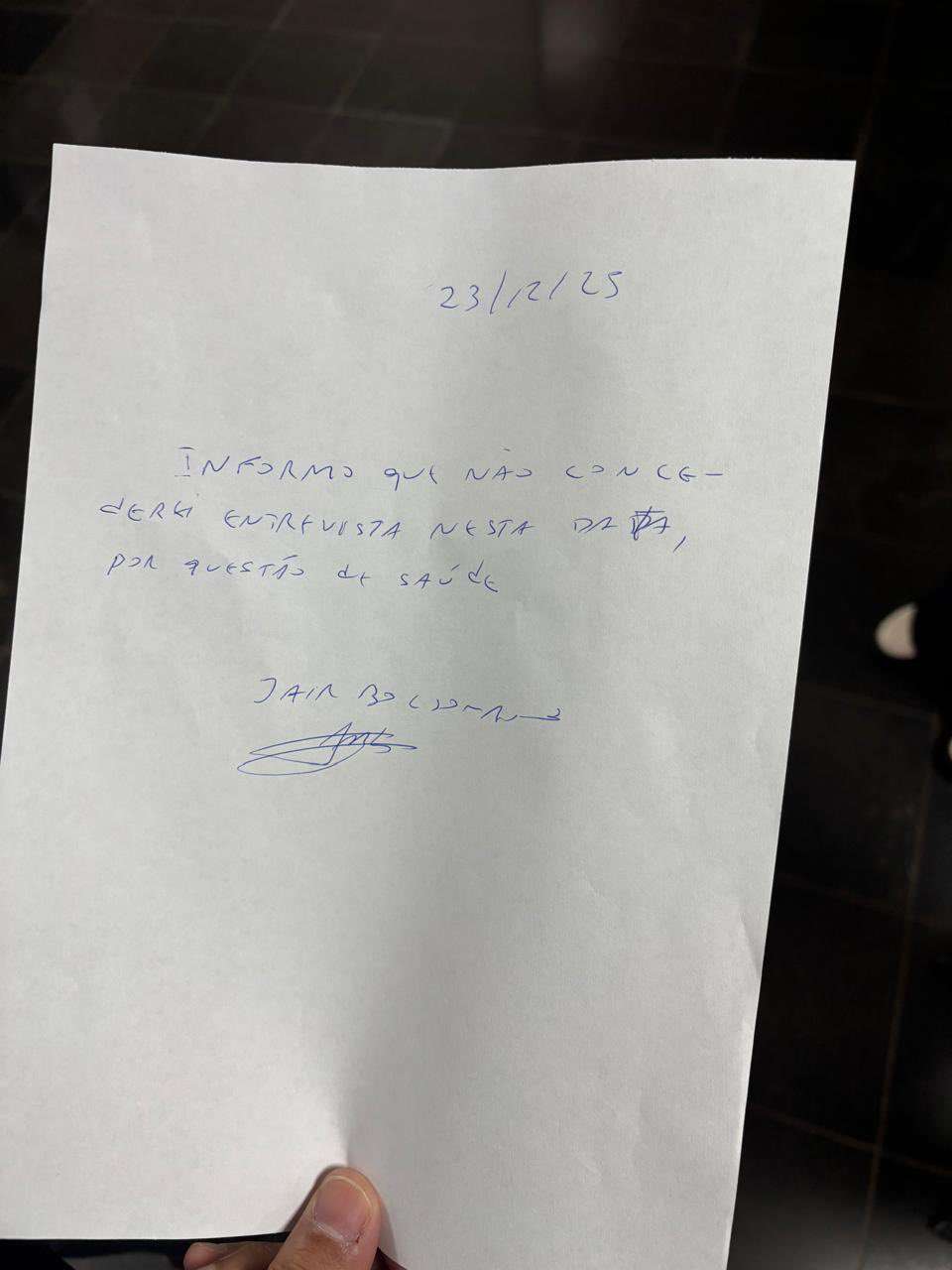 Veja o bilhete escrito por Bolsonaro para cancelar entrevista