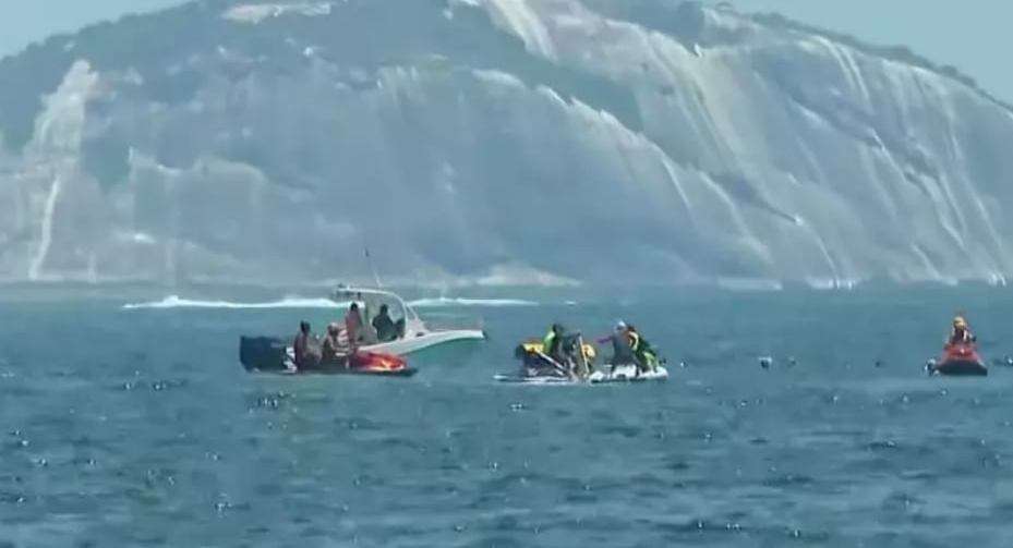 Os Bombeiros foram acionados às 12h34 e mobilizaram motos aquáticas, embarcações infláveis, mergulhadores e apoio aéreo com helicóptero para as operações de resgate. Nenhuma outra pessoa ficou ferida, apesar da presença de outras embarcações e motos aquáticas na água.