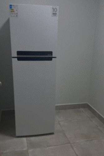 - cama de casal, geladeira, armários e televisão;