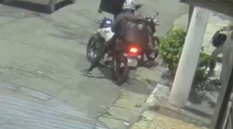 As imagens mostram o momento em que duas motocicletas circulam pela via, por volta das 21h14, e retornam após avistarem uma mulher caminhando sozinha. Em seguida, os indivíduos abordam a vítima.
